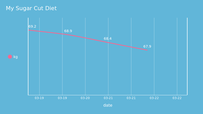 なんか下の日付が変だけど、まあ気にしない。スタート前日の3/19の体重も表示させてある。